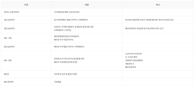 - 예산 요구 및 협의: 각 부처는 매년 5월 말까지 기획재정부에 예산 요구서를 제출하며, 이후 협의와 조정을 통해 최종안을 도출합니다.
