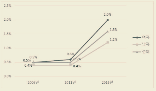 우리나라에서는 2016년에 실시된 조사에 따라, 사회불안장애의 평생 유병률은 1.6%로 나타났습니다. 이는 2006년에 0.8%, 2011년에 1.1%로 조사된 결과보다 증가한 것으로 보입니다. 이러한 증가는 사회적 상황에 대한 인식이 변화하고, 사회불안장애에 대한 인식이 높아지고, 정신건강 문제에 대한 치료를 받기 쉬워지고, 사회불안장애의 진단 기준이 개선되었기 때문일 수 있습니다. 사회불안장애는 다른 정신장애와 함께 발생할 가능성이 높은 편입니다. 예를 들어, 우울증, 강박증, 공황장애, 알코올 남용 장애 등이 사회불안장애와 동반될 수 있습니다. 이러한 병합 장애는 사회불안장애의 증상을 악화시키고, 치료의 어려움을 증가시킬 수 있습니다. 따라서, 사회불안장애를 가진 사람들은 전문가의 도움을 받아 적절한 진단과 치료를 받는 것이 중요합니다.
