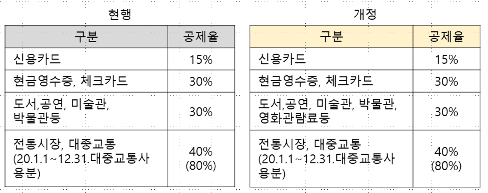 현재 “신용카드 등 사용금액”의 공제율은 15%이고, ‘신용카드 등 사용금액’의