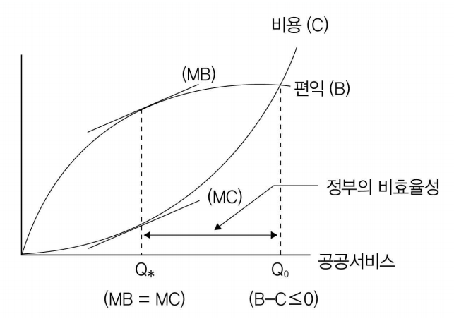 정치가는 사후후생의 극대화를 달성하기 위해 총평익과 총비용의 차이인 순편익이 최대가 되는 수준에서 공공서비스를 공급하려고 하고,