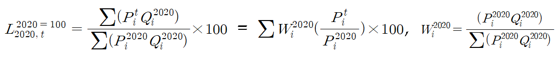 * L: 지수, P:가격, Q:수량, W:가중치, t:시점, i:품목