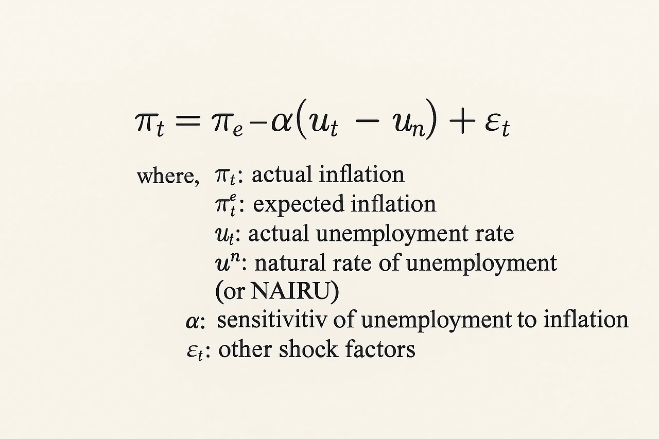 \(\pi_t = \pi^e_t - \alpha(u_t - u^n) + \varepsilon_t\)