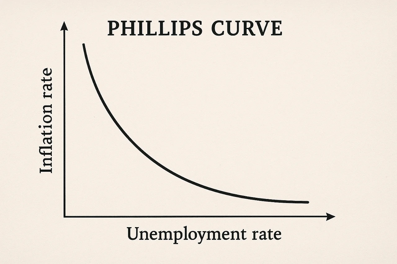 1958년, A.W. 필립스는 "The Relationship between Unemployment and the Rate of Change of Money Wage Rates in the United Kingdom, 1861–1957"이라는 논문을 발표합니다. 그는 영국의 100년치 데이터를 분석하여, 실업률이 낮을수록 임금 상승률이 높고, 실업률이 높을수록 임금 상승률이 낮다는 통계적 관계를 발견합니다. 이 결과는 단순한 상관관계를 넘어, 경제정책 수립에 있어서 “실업률을 낮추기 위해 일정 수준의 인플레이션을 감수할 수 있다”는 메시지를 던졌고, 필립스 커브는 곧 거시경제학의 중심축으로 부상합니다.