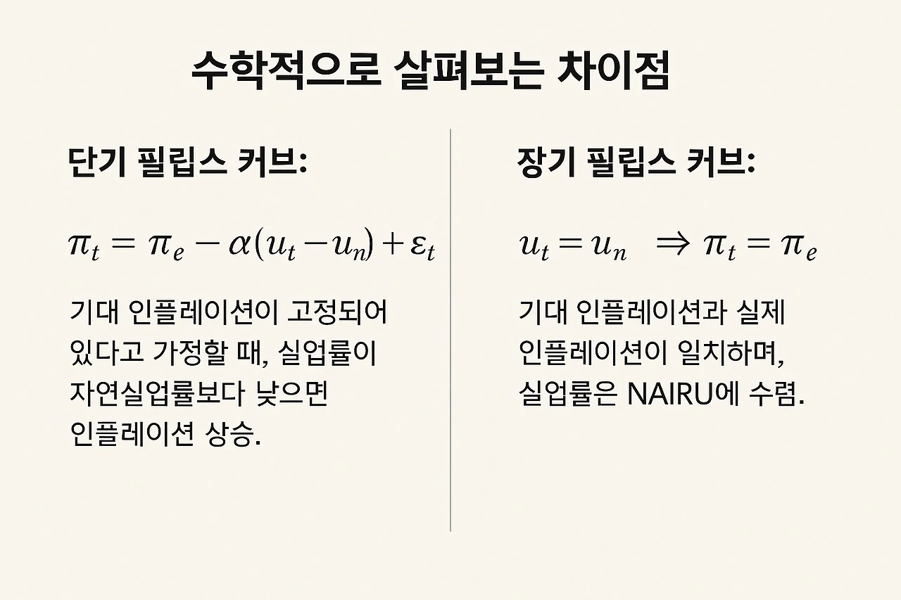 필립스 커브를 이해할 때 가장 중요한 구분 중 하나는 단기(short-run)와 장기(long-run) 관점의 차이입니다. 이 구분은 실업률과 인플레이션 간의 관계가 시간이 지나면서 어떻게 달라지는지를 설명하며, 정책 결정에 매우 큰 영향을 미칩니다.