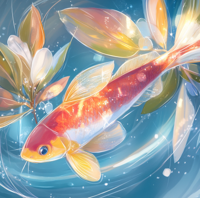 힘껏 낚싯대를 끌어올리자 커다란 금빛 잉어가 걸려 있었습니다.