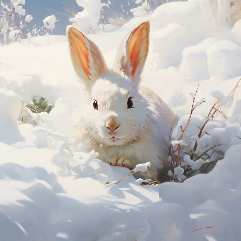 토끼는 눈밭을 힘차게 달리며 멀리 도망쳤습니다.