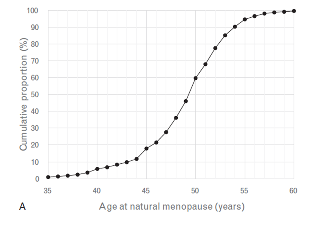 폐경은 난포의 숫자가 줄어들어 난소에서 분비되는 여성호르몬이 감소되어 나타나는 현상으로 이차적인 원인이 없이 1년간 무월경 상태가 지속된 경우를 말합니다. 평균적으로 46세에 폐경 이행기가 시작하여 50세에 폐경에 이르는 경우가 많으며, 에스트로겐이 감소하고/ 난포자극 호르몬(FSH)이 상승하게 됩니다.