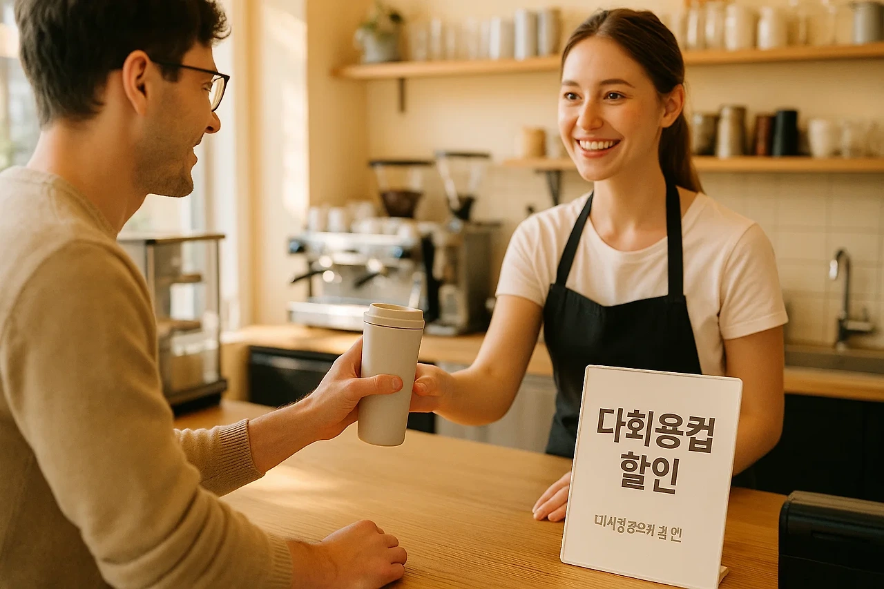 다회용컵을 쓰면 500원 할인, 쿠키 증정, 심지어 상품권 추첨까지! 실속까지 챙기는 착한 소비 프로젝트죠.