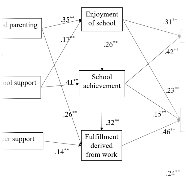 이 모형은 변수들 간의 관계를 직접 효과(Direct Effect), 간접 효과(Indirect Effect), 총 효과(Total Effect)로 나누어 분석할 수 있도록 설계되었습니다.