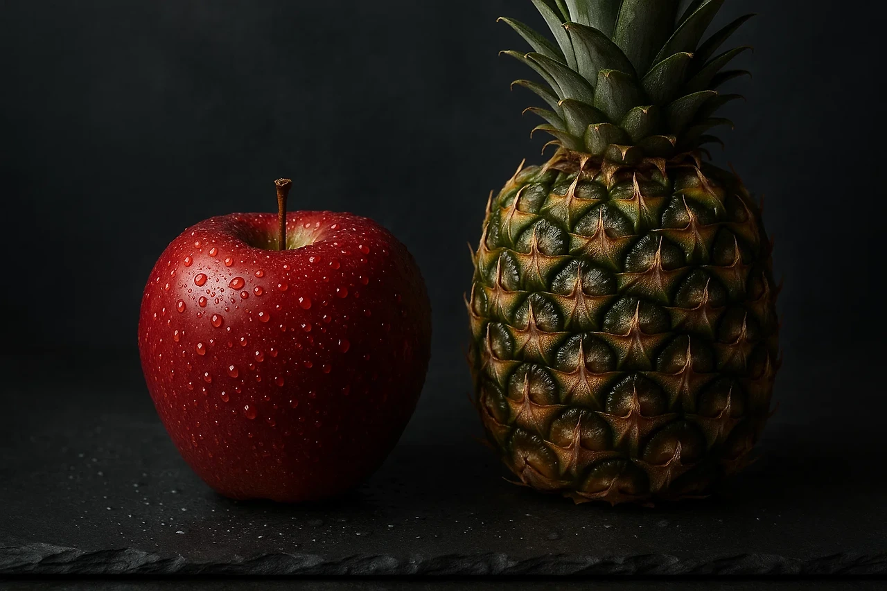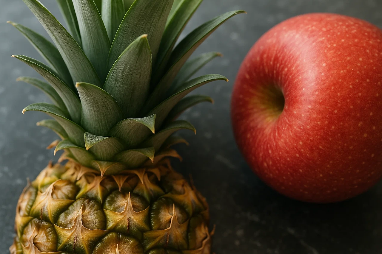 사과(apple)와 파인애플(pineapple). 과일 코너에서 늘 보던 친구들이지만, 이름만 보면 마치 사촌지간 같아 보이죠. 실제로는 씨앗도, 가정도, 심지어 과육의 구조까지 전혀 어울리지 않는 조합인데, 왜 둘 다 apple을 공유하는 걸까요?