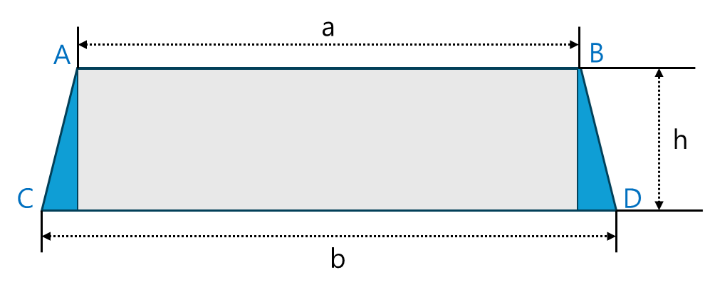- \(a\)는 윗변 길이, \(b\)는 아랫변 길이, \(h\)는 두 평행선 사이의 수직 거리(즉, 높이)입니다.