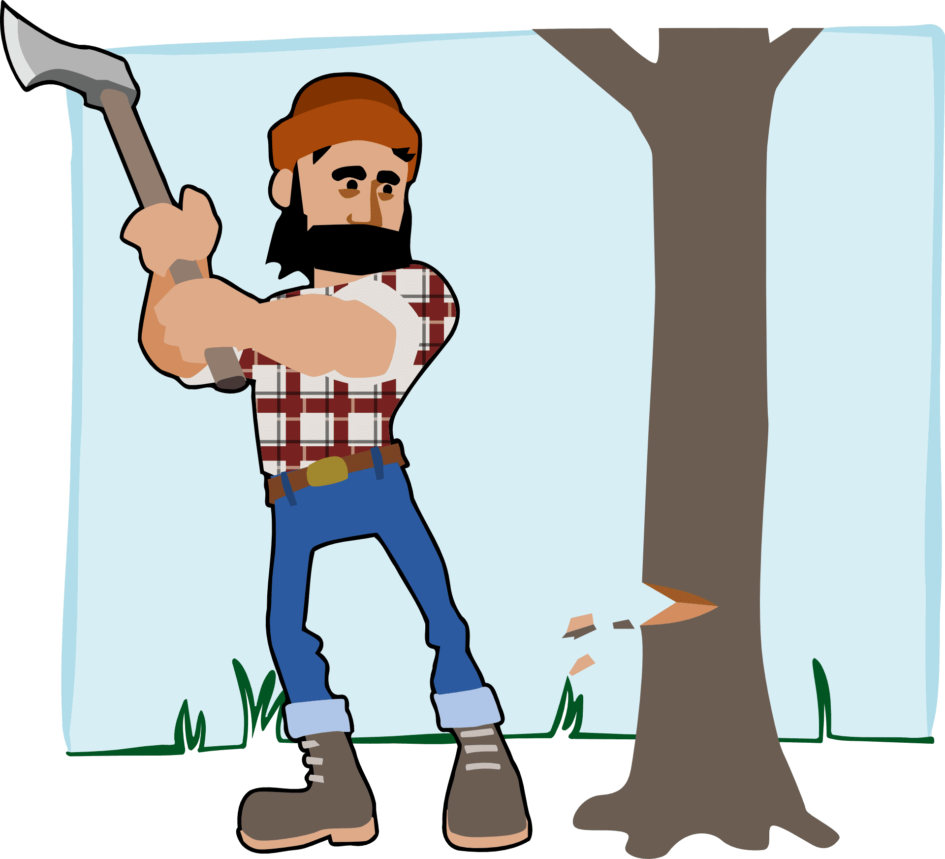 기쁜 마음으로 도끼질을 시작한 나무꾼.